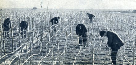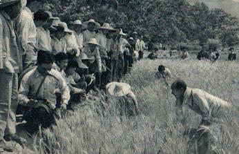 河北邢台县“万户之家”人民公社青年试验场正在田间搭起网架,预防小麦倒伏。(1959年)