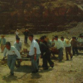 当邢台地区遭受地震灾害的消息传到西藏以后,许多地区的藏族翻身农牧民举行集会,要求尽自己力量来帮助灾区人民。经过中共西藏自治区委员会和自治区人民委员会的同意,决定送一批马,帮助灾区人民建设家园。立即,西藏各地翻身农奴纷纷要求派出自己代表送马到邢台。图为西藏翻身农奴在邢台县南会大队参观访问时,和社员们一起修建水库。(《民族画报》1966年第8期)