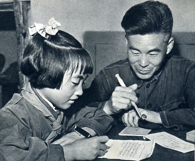 武玉莲是揣骨疃中心小耕读班四年级学生,她已能帮助父亲写信了。