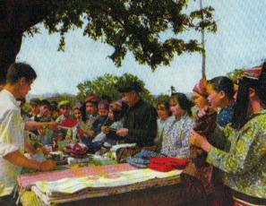 毛道公社商业站将日用百货送到山村,供社员选购。
