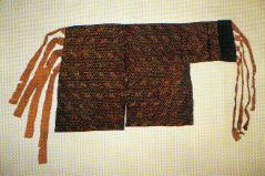褐地朵梅鸾章金锦绵蔽膝,长86.5厘米。