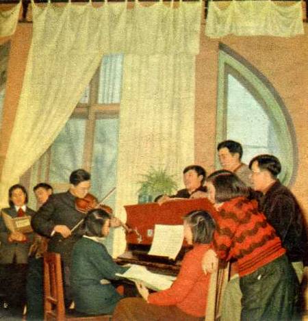 课余时间,俱乐部里充满了愉快的歌声。