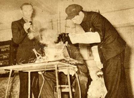 苏联专家普罗霍洛夫博士亲自指导机械系焊接专业的研究生作电焊实验。