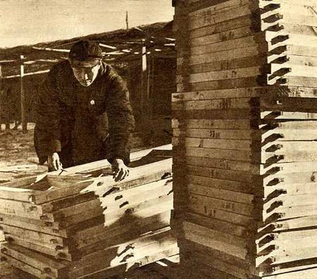 木工厂成品班长韩理三在进行成品的规格检查。