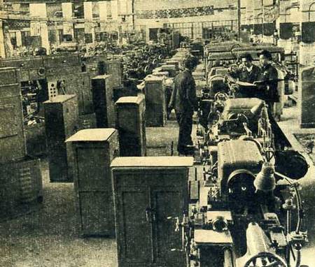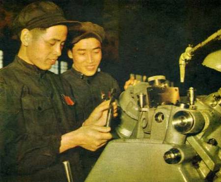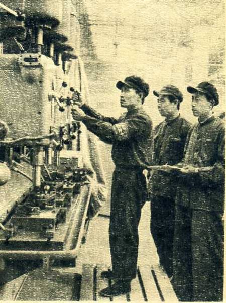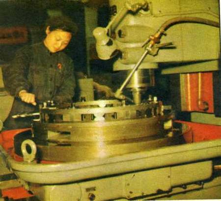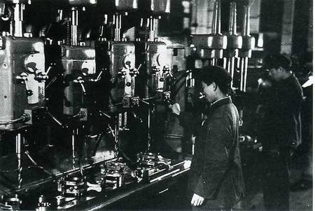 工具车间已经开始生产。技术徐宏善在螺丝磨床旁工作。