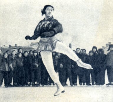 曾经获得1953年全国冰上运动大会女子组花样滑冰第二名的哈尔滨工业大学助教李建华。