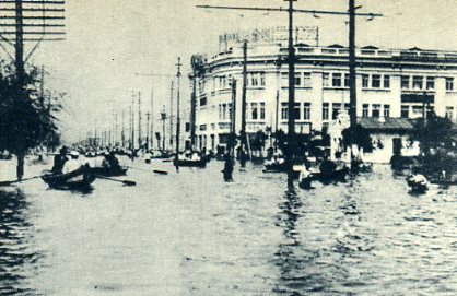 1932年水位只有119.72公尺,尚志大街(解放后改今名)已是一片汪洋。