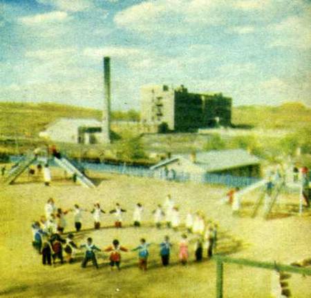 矿区幼儿园的一部分孩子。矿区还为职工的子女们设立了保育院、小学和中学。
