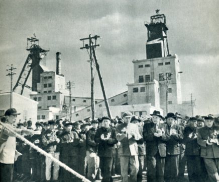 东北鹤岗煤矿东山竖井已在9月20日举行移交生产典礼。这座竖井是我国第一个五年计划期间由苏联政府帮助建设的27项煤矿企业之一,移交生产后,我国煤炭工业战线上又增加了一支具有机械化、自动化装备的生力军。参加典礼的有我国煤炭工业部副部长徐达本、中国煤矿工会全国委员会主席金直夫、以扎布洛茨基同志为首的苏联政府代表团以及帮助我国建设的苏联专家们。