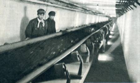 从井底提升上来的煤,由皮带运输机送往铁路煤仓。