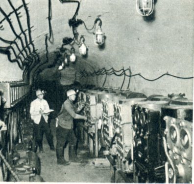 装有安全灯的井下中央变电所把流变成各种不同的电压,输送给各个生产部门。