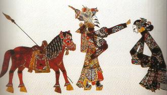 皮影《武家坡》。唐代薛仁贵西征,陷于西凉。18年后归家,遇妻王宝钏于武家坡前。时薛面貌大变,宝钏见面不识。薛为试宝钏,借问路为名,假意以重金收买。宝钏坚决不从,逃回寒窑。薛追至寒窑,告以真情并叙别后经历。宝钏闻之悲喜交集。
