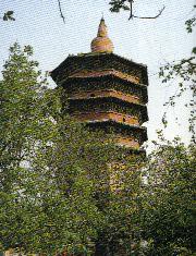 - 在滑县城内东南隅的明福寺内。砖石结构。隋仁寿四年(604年)本地杜明福捐宅院为寺,故名明福寺。唐开元时曾在寺内建小石塔,后又修建此塔。现寺废塔存。但据其建筑形式和塔内文物特征推测,可能建于北宋初年。此塔历经修葺,保存尚好。塔高40米,平面呈八角形,七层密檐式,矗立在高2.4米的石台基上,外廊呈楔形。塔内中空,原有阶梯可登至第5层。