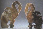 商玉鹤—两只屈颈展翅的立鹤,是妇好墓出土的玉雕精品。
