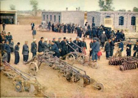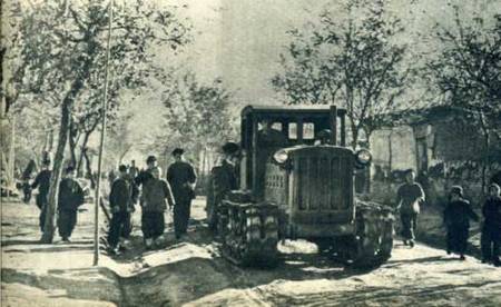 冬耕开始了,拖拉机站开来了拖拉机帮助耕地。