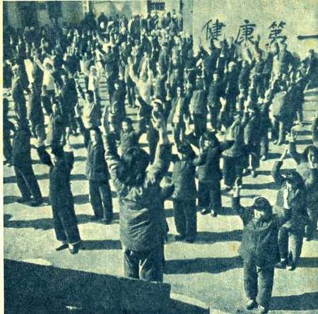 林县下申街村农民的集体早操。