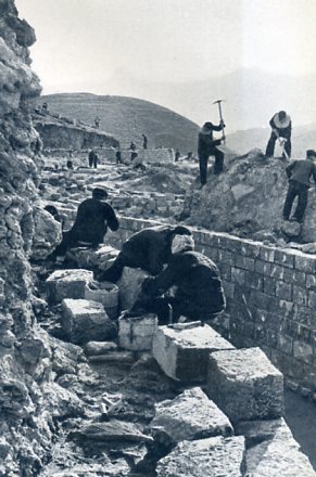 1969年7月6日,林县人民建成红旗渠。图为悬崖风餐露宿的建渠工人。