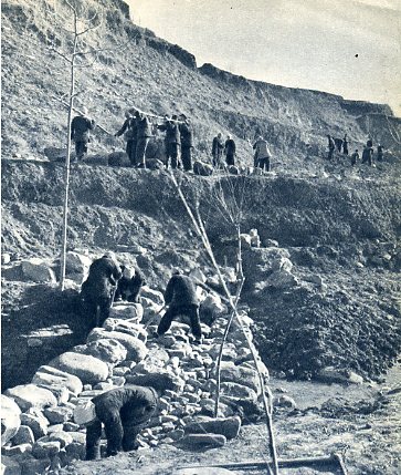 把乱石成堆的河滩地改造为耕地。