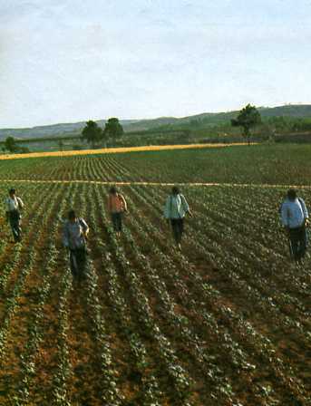 坚持劳武结合。图为葫芦队员在进行棉花田间管理。