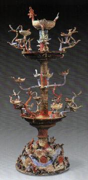 (东汉)彩绘神兽多枝陶灯。高110厘米,1991年济源市出土。