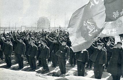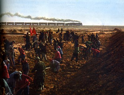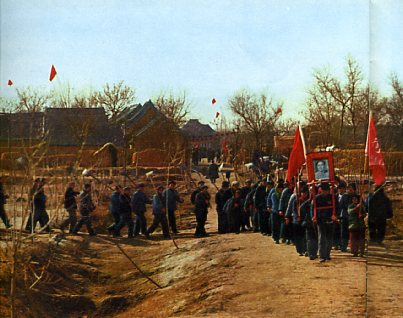 如今,兰考到处呈现一片空前大好的革命景象。这是社员们意气风发地下地去劳动。