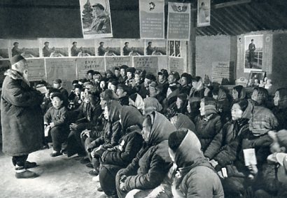 毛泽东思想学习班象雨后春笋般地遍及兰考每一个公社和生产队。这是堌阳公社付堂大队举办的第四期学习班。参加这期学习班的,多数是老人和青年。老人们以自己在旧社会受压迫受剥削的苦难经历,对青年一代进行阶级教育。