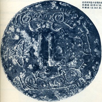 这是我国迄今发现的最早的铜镜(直径6.7厘米)。