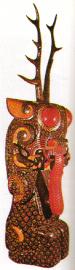 战国 彩漆镇墓兽,楚墓出土。