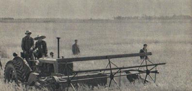 联合收割机奔驰在山头店人民公社的麦田里。(1959年)
