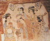 白沙镇宋墓壁画对镜妇人。绘于第1号墓后室西南壁,约宽80厘米、长100厘米。