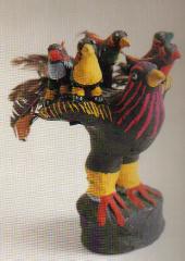 淮阳泥塑摆设—“九头鸟”。从神话角度看,大鸟身上背八只小鸟,象征鸟部族合族迁徙。