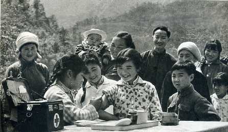 公社卫生院医务人员用中草药制造治疗风湿病的注射液。