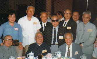 在全国政协礼堂举行的黄埔军校同学会第一次会员代表大会茶话会上。前排左起:屈武、李仙洲、侯镜如;后排右起:黄维、张伯权、黄翔、陈锐庭。