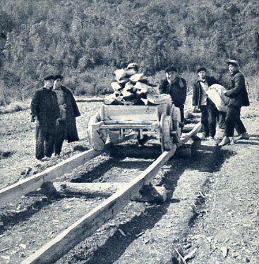 三桥农业社在附近山上架了一根88丈长的铁丝运输天线,不但运炭运柴时不用爬3里多的高坡,而且运输工效比人挑高出20倍。