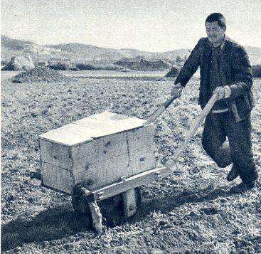 乾河乡农民集体制造的自动施肥车,工效提高了2倍。