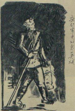 长征中的真实图画《夜行军中的老英雄》黄镇 画。