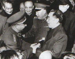 1958年10月27日,首都人民举行欢迎中国人民志愿军胜利归国大会,左一为志愿军司令员杨勇上将。