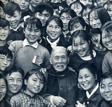 著名的湖南第一师范学校创办已五十年了。1913年到1918年毛主席曾在这个学校学习,并曾组织“新民学会”,团结革命的青年进行改革中国的运动。这个学校的不少学生和教师后来都成为著名的革命家。不久前,老革命家、中共中央委员徐特立同志(中)和这个学校的学生一起欢度校庆。徐特立同志曾于1913年到1919年间在这里任教。