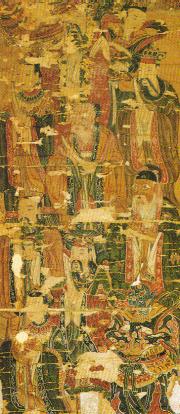功德画·天界。玉皇是“旻天今阙”之至尊。天界还包括万法恩师元天上帝、雷声普化天尊、解冤释结天尊、九天雷祖大帝、紫微太乙天尊、延生延寿天尊、上帝圣母元君等。另外,还有雷公、电母、风伯、雨师。雷公黑面鹰嘴,电母持镜,风伯执扇,雨师端杯。湘中地区流传。