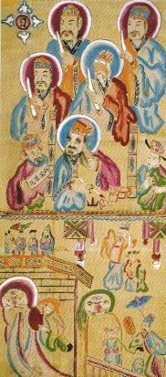 新邵县 名胜古迹 人物典故 地方特产 1952年析新化、邵阳2县部分地置县,取2县县名首字命名。1983年划归邵阳市。 邮编:422900 区号:0739 廖耀湘(1906-1968) 功德画·奈何桥。湘中地区流传。画面分上下两段,上段为阎王和判官;下段为奈何桥上下对善恶亡魂的不同处置。 功德画·奈何桥(局部)奈何桥上,引魂童子引导善男善女亡魂正从奈何桥上欣然过往。