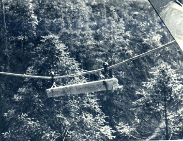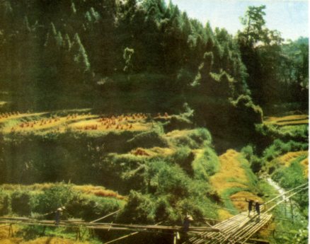 湖南湘西林区试用架空竹条运材成功,效率比人力搬运提高25倍。这种竹条可以载重800公斤,成本只及架空钢索的五十六分之一,而且可以就地取材,架设简便,操作也很安全。(1958年)