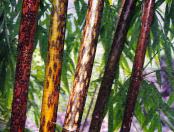 斑竹,又名泪竹,湘妃竹,相传舜帝二妃娥皇、女英闻舜帝驾崩苍梧之野,千里寻夫到九疑,触景生情,悲痛欲绝,血泪点点,用手揩泪,抚竹相泣而成。