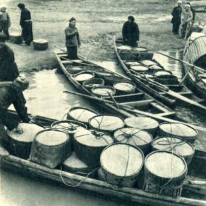 夏先菊互助组领回了政府贷给的大量早稻种籽。