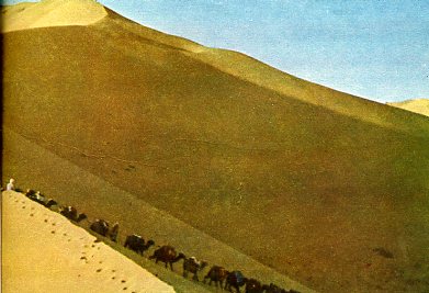 在内蒙古自治区西部,有一个纵横约39000平方公里的巴丹吉林大沙漠,它是我国最大的沙漠之一。历史上没有关于它的任何记载,我们仅从地图上知道它的名字。去年10月,内蒙、新疆等6个省和自治区的治沙会议,吹响了向沙漠进军的号角。主要的任务是考察路线,探索沙漠的基本情况,为将来改造和利用沙漠提供全面的科学资料。