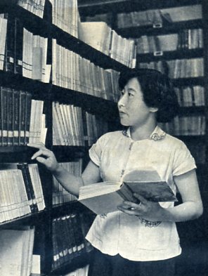 在内蒙古人民出版社工作的师范学院毕业生恩和其其格在编辑高初中蒙古文学教科书。