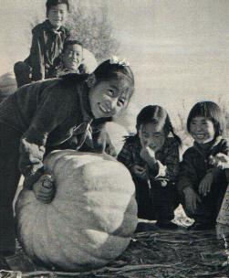 哈腾套海综合林场在沙地里种的瓜,最大的有五十多斤重。(1964年)