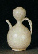 辽晚期 林东窑 白釉葫芦形把壶。葫芦形把壶是辽代晚期的流行形式。本品泰釉均极佳,可能是上京临潢府故城窑的产品。该窑生长上佳的白釉和黑釉两种。