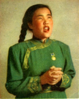 女歌手宝音德勒格。她的优美演唱曾获得1955年世界青年联欢节的一等奖。