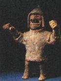 北魏武士俑。1975年北魏墓出土,是北魏早期的作品,别具情趣。高39.5厘米。