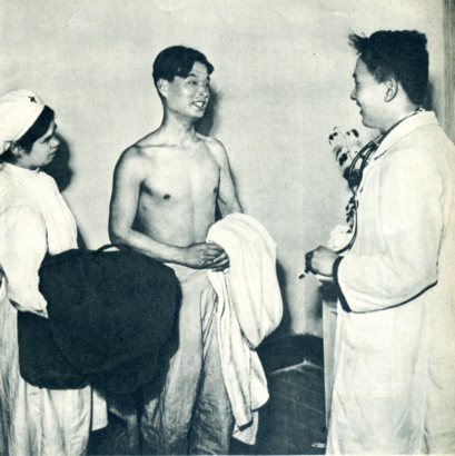 职工医院和疗养所是森林工人健康的保障。病人出院前,医生来做最后一次检查。
